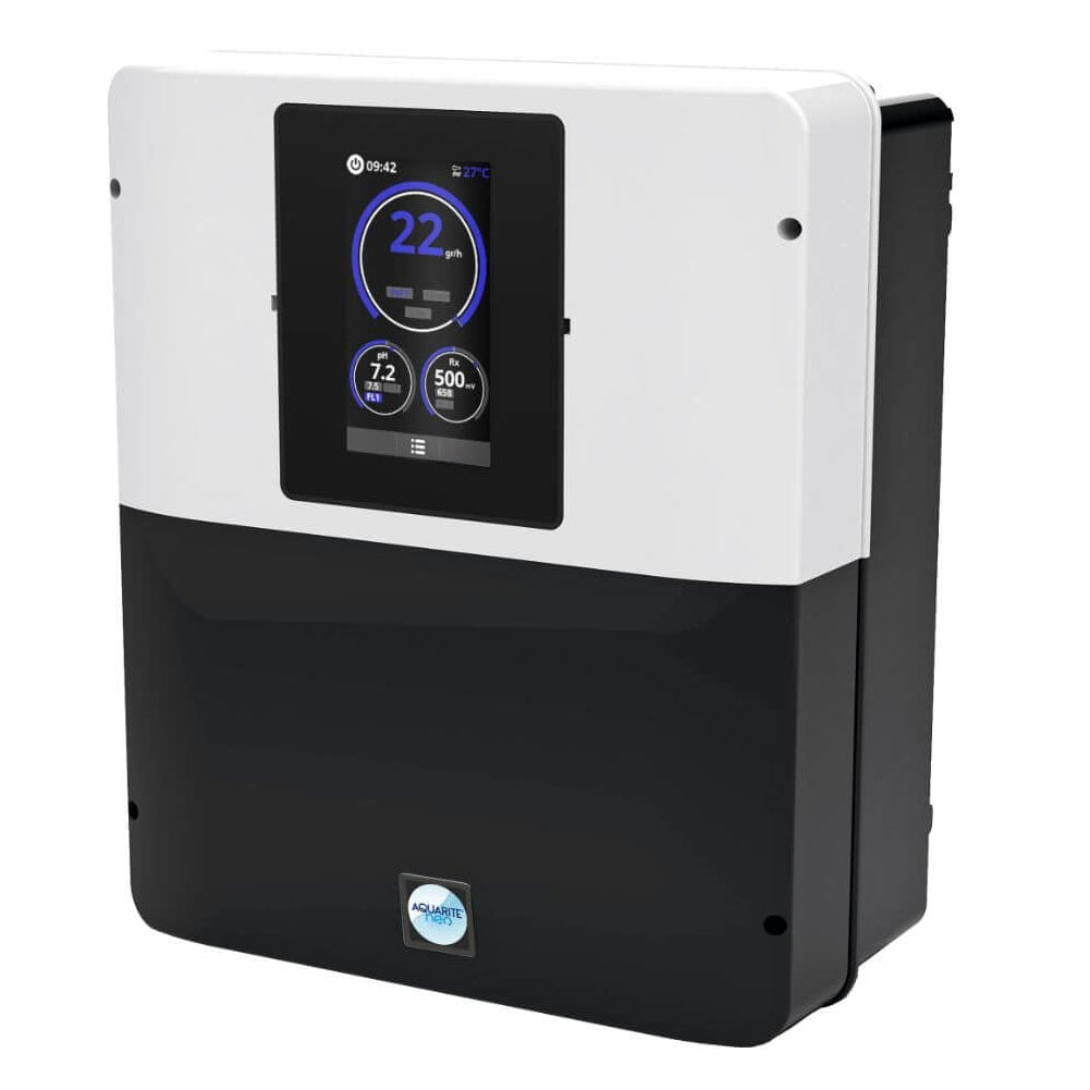 De AquaRite® NEO LS is een geavanceerd systeem voor zoutelektrolyse voor particuliere zwembaden, ontwikkeld om een automatische waterbehandeling te garanderen die efficiënt, veilig en gemakkelijk in gebruik is. Ideaal voor wie op zoek is naar helder water, gezonder en met minder onderhoud, zet deze zoutchlorinator het opgeloste zout om in natuurlijk chloor, waarmee bacteriën, algen en onzuiverheden worden verwijderd.